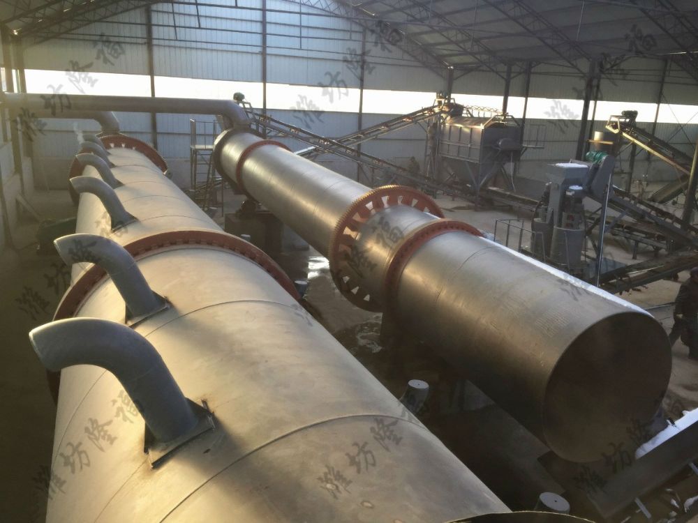 4、成球后顆粒直接進入回轉式烘干機—回轉式冷卻機